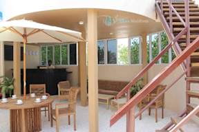 Restaurant in the ground, first floor with sea view serves European, Indian, Chinese and Maldivian Dishes and on the rooftop open air terrace serve private dinner.... More...