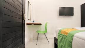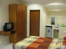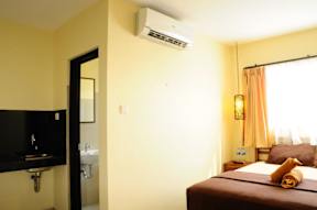 One bedroom with queen size bed with size 3.5m x 7m. The facilities are bathroom hot and cold water, air conditioner, television, pantry with standard equipment, wardrobe, two bed site table, two chai... More...
