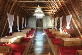 Our unique round bungalows are equipped with big, rattan made round bed covered with mosquito nets. Each bungalow has a private bathroom and a small garden. rn... More...