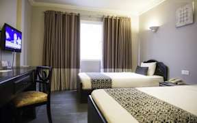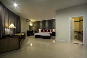 Rooms in Hometown Suite Hotel come with dark wood furnishings and neutral wall colours.... More...